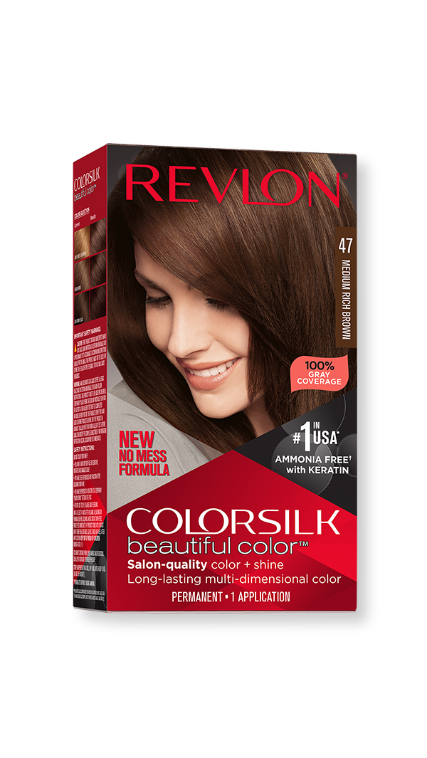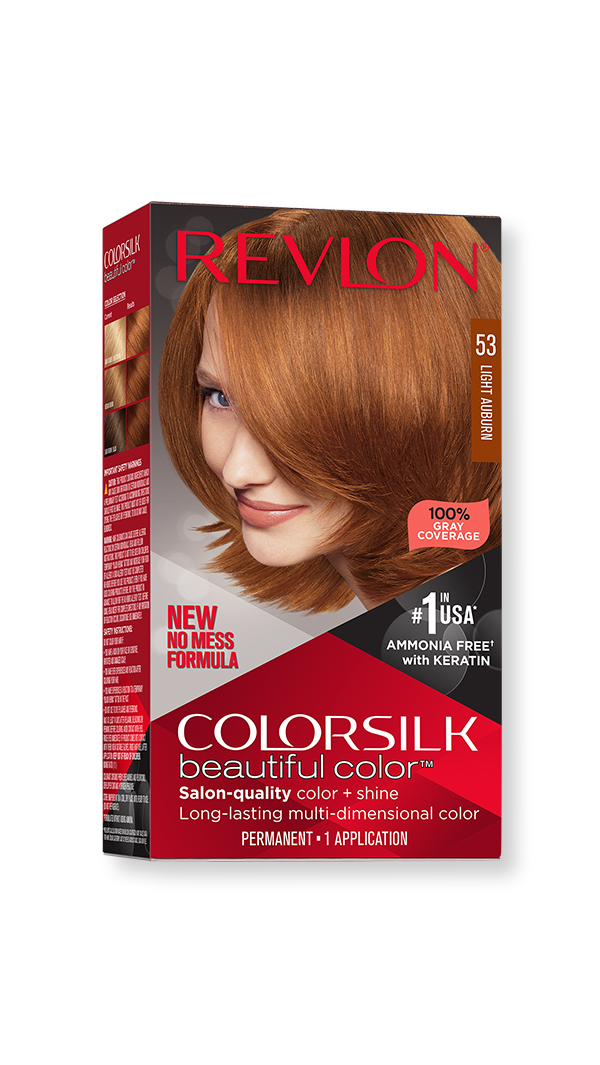 Formulë e re, pa rrëmujë për aplikim të lehtë të bojrave në shtëpi. E njëjta ngjyrë e shkëlqyer e flokëve ColorSilk e dashur nga gratë, tani është bërë edhe më e mirë me nuancat e reja trendi dhe një formulë të re! ColorSilk Beautiful Color™ është marka numër 1 në SHBA*. Ngjyra e flokëve pa amoniak jep 100% mbulim dhe ngjyrë plotshkëlqim të cilësisë së sallonit. Arrini një ngjyrë të pasur dhe të qëndrueshme të flokëve në shtëpi! Flokët lihen të mëndafshtë, me shkëlqim, të shëndetshëm dhe në gjendje më të mirë se përpara se t'i ngjyrosni pas çdo kutie. Revlon's 3D Color Gel Technology™ jep një pamje natyrale dhe ngjyrë shumëtonale nga rrënja në majë, duke ofruar definicion dhe duke rritur dimensionin e flokëve tuaj.